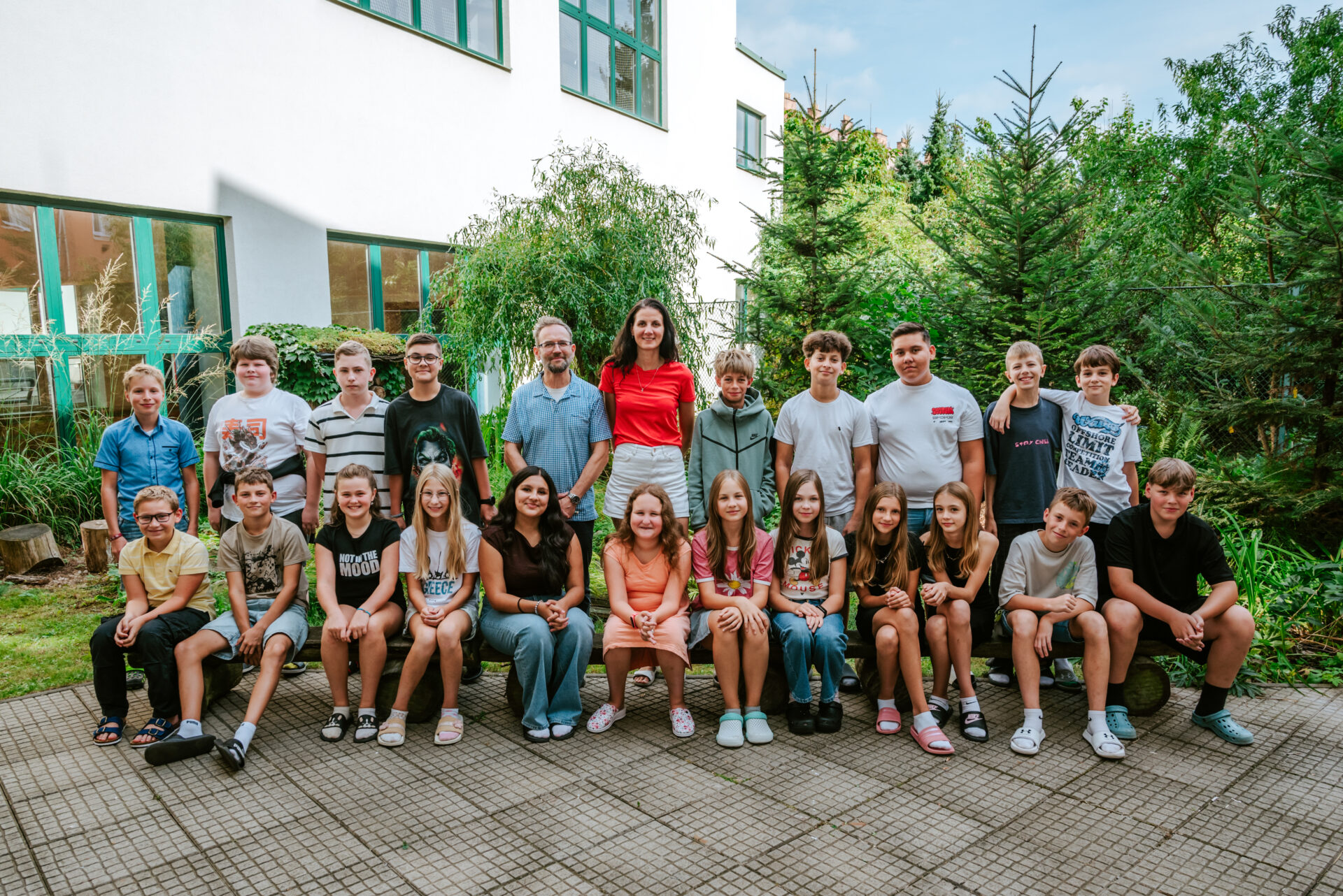 Naše třída je plná energie a dobré nálady! Jsme veselí, akční a občas i dost živí. Na rozdíl od nás náš třídní učitel není tak divoký, ale je chápavý, laskavý a zároveň důsledný. Rádi se učíme různé předměty, nejvíc nás baví tělocvik, hlavně vybíjená. Máme skvělé učitele, kteří jsou na nás hodní, a moc si toho vážíme. S novou učebnou se teprve seznamujeme, ale postupně bychom ji chtěli zkrášlit a udělat si ji co nejhezčí. I když někdy býváme hluční, o přestávkách dokážeme být i v pohodě. Umíme si navzájem pomáhat, držet při sobě a přicházet s novými nápady a sjednotit se jako jeden tým.