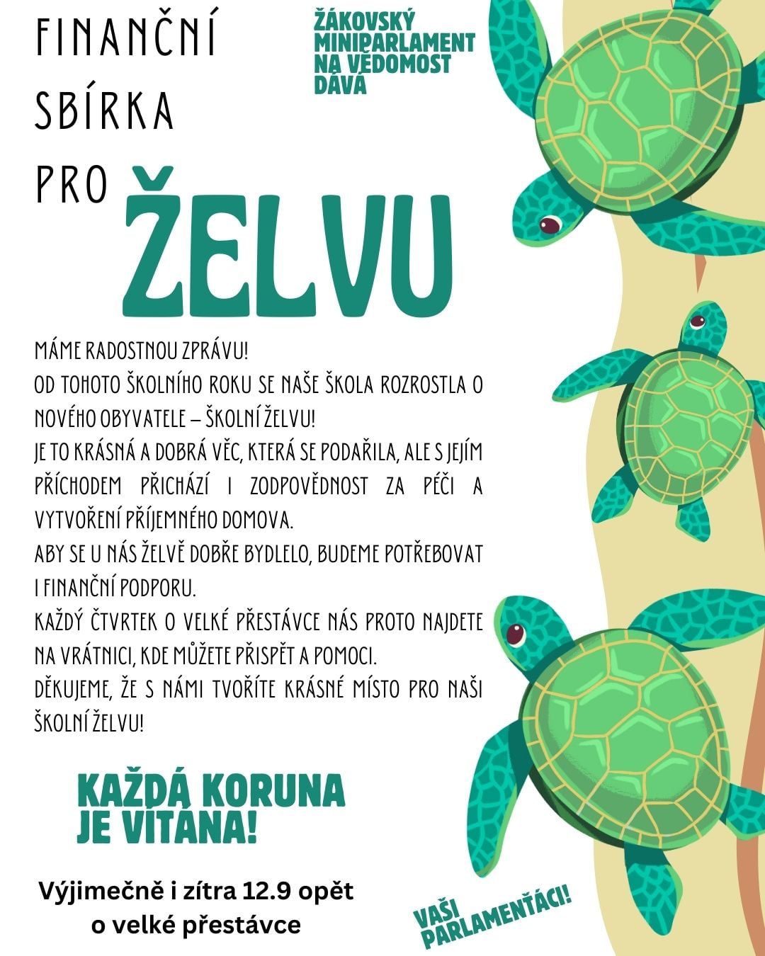 Finanční sbírka pro školní želvu! 🐢 Máme radostnou zprávu!