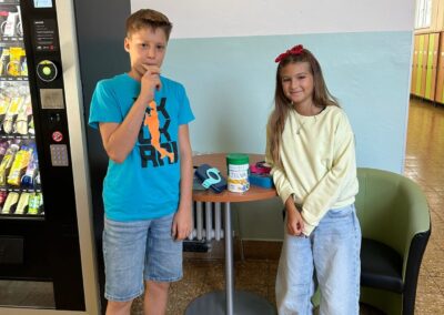 Každý čtvrtek o velké přestávce nás proto najdete na vrátnici, kde můžete přispět a pomoci.