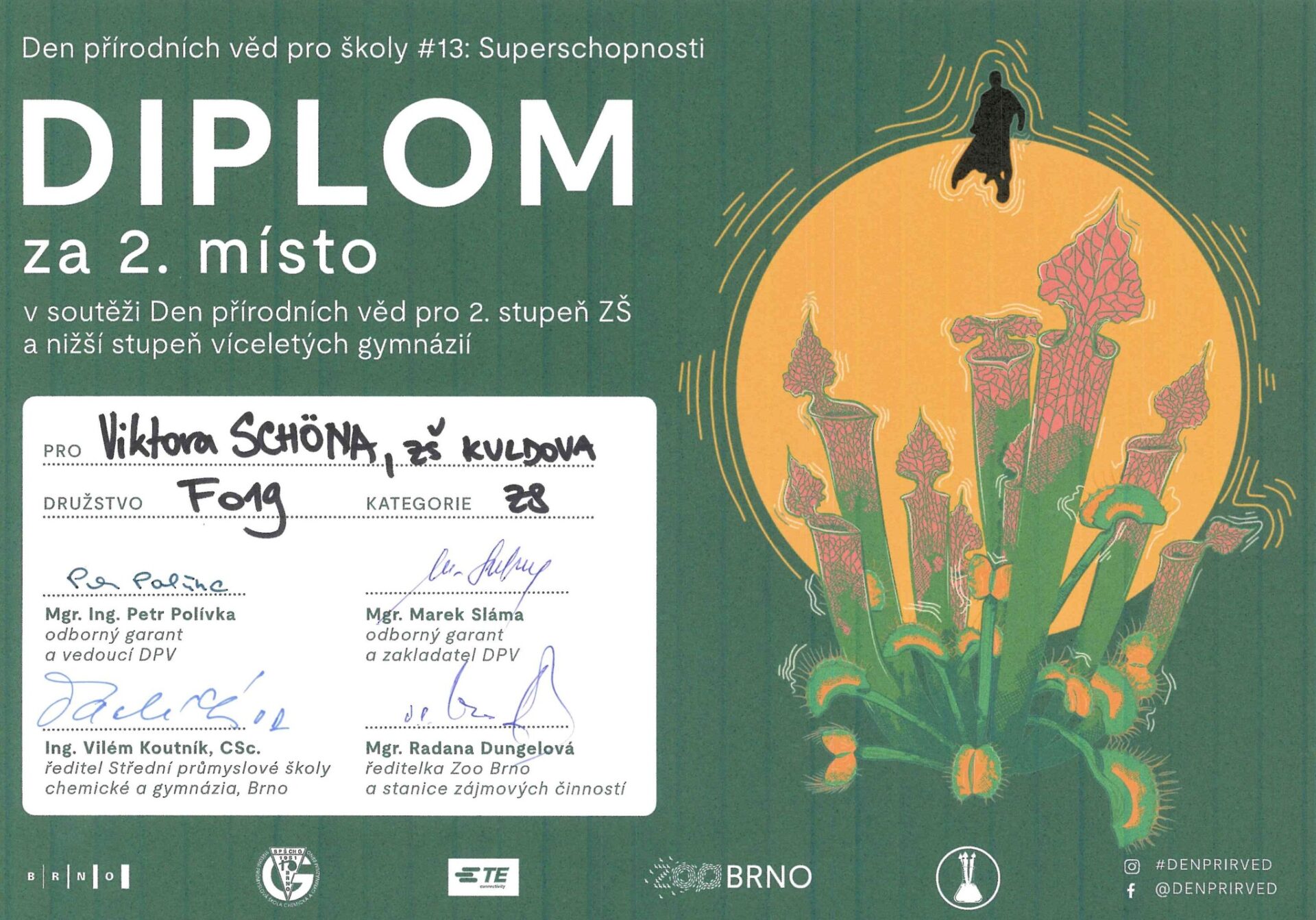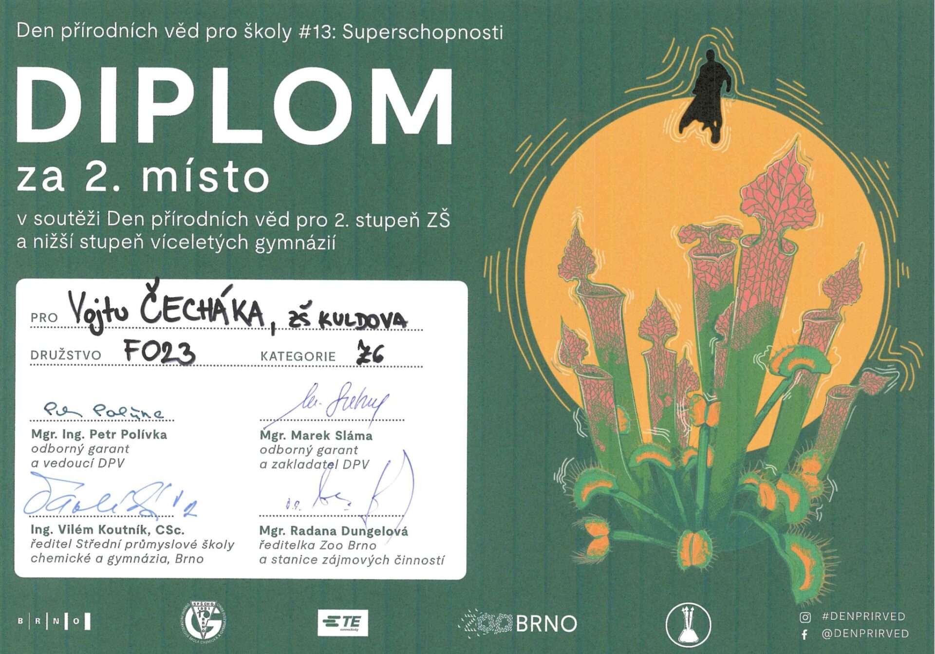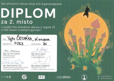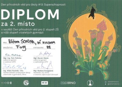 Ve starší kategorii uspěla trojice Viktor Schön, Štěpán Spurný a Honza Liška (všichni 9. A), v mladší pak Verča Kolčárková, Vojta Čechák a Albert Buček (všichni 7. B).