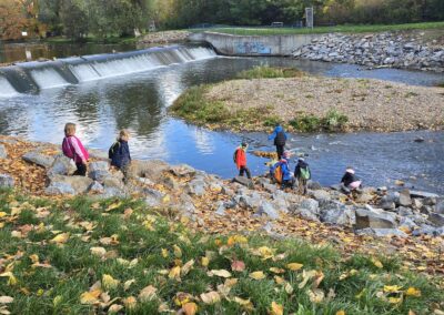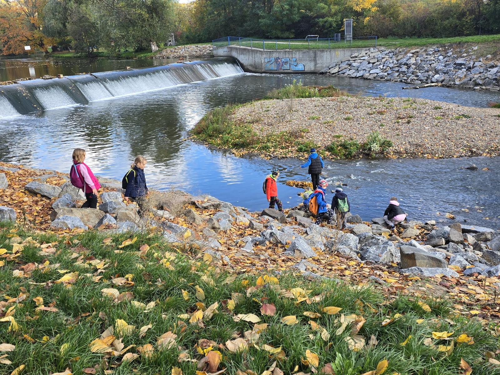 V sobotu (18.10.) vyrazili rodiče, děti z 1. A a jejich sourozenci na svůj první společný výlet. Akci zorganizovali dospěláci sami, aby se všichni lépe poznali. Počasí výletníkům přálo. Ze židenického nádraží se skupina svezla do Bílovic a odtud už putovala podél řeky Svitavy až do Brna.