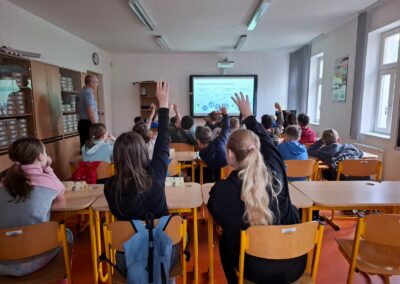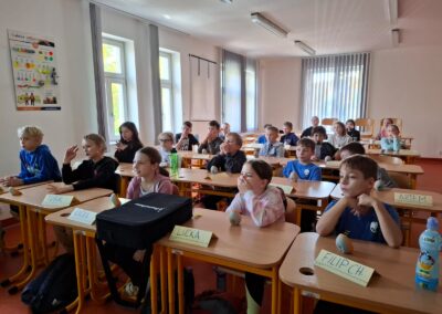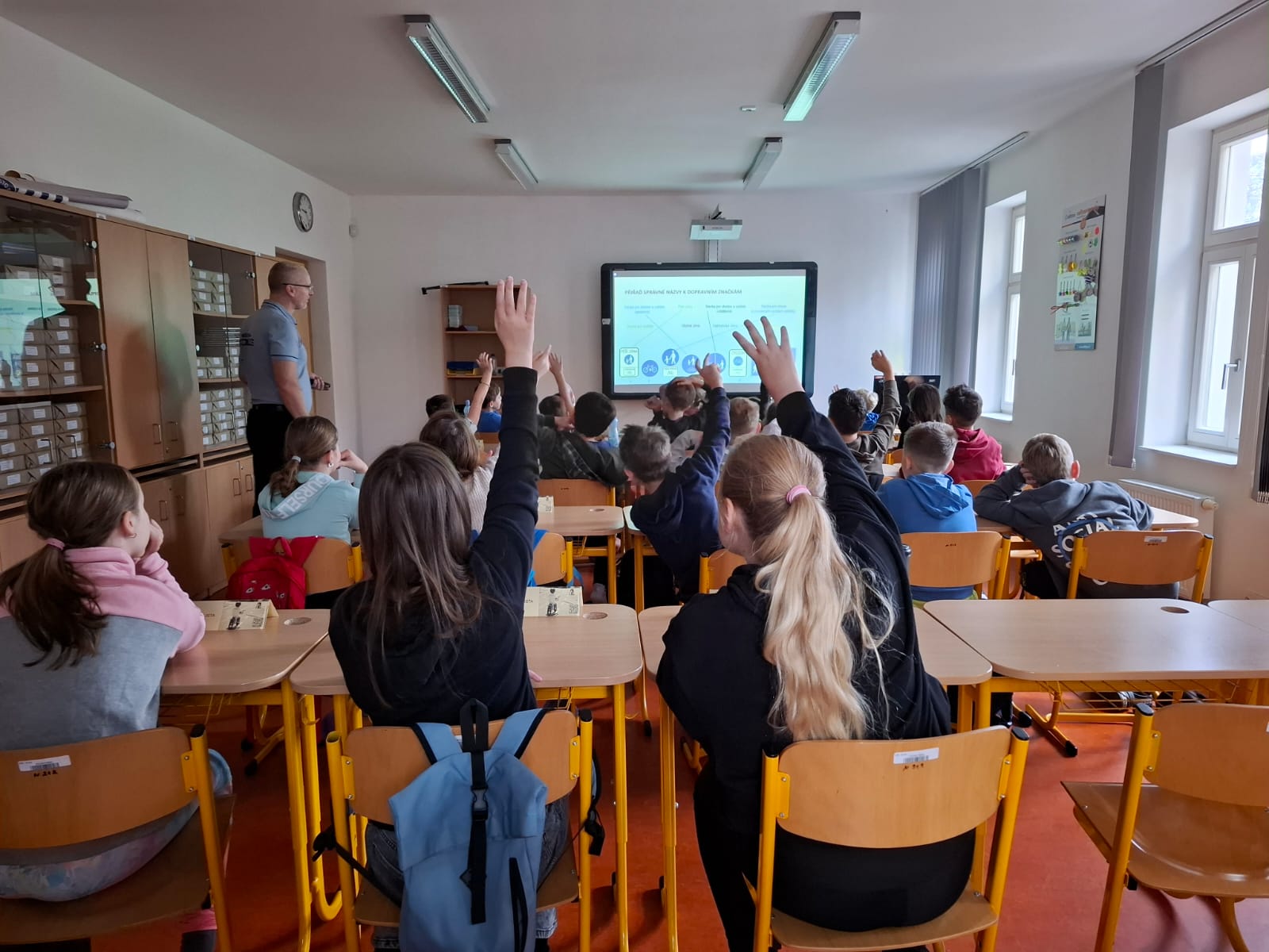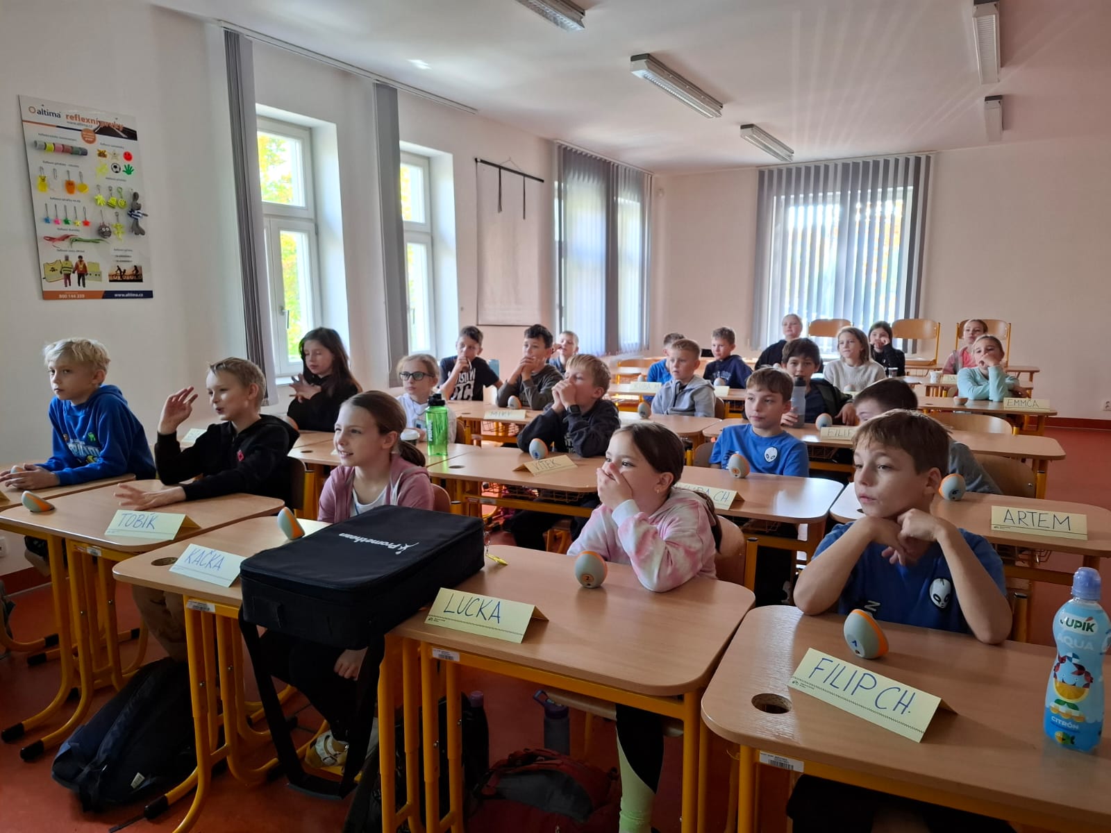 Žáci 4. A se vydali na dopravní hřiště Riviéra na výukový program Empík cyklista. Pan policista jim nejdříve vysvětlil základní pravidla silničního provozu i význam dopravních značek. Poté si děti vše vyzkoušely v praxi na kolech a ukázaly, že jsou zdatní cyklisté. A na závěr jsme se pořádně vyváleli v podzimním listí. Zkrátka prima dopoledne!