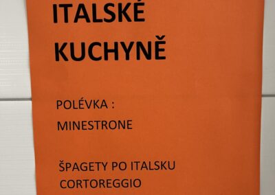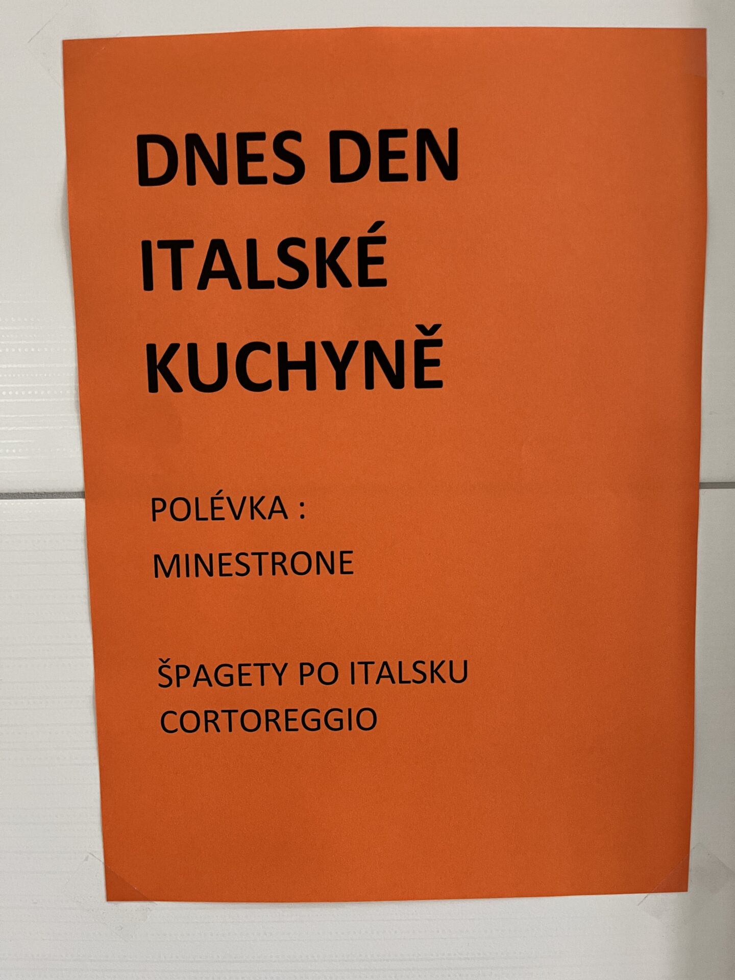 a také Den italské kuchyně – podávalo se minestrone a špagety Cortoreggio.