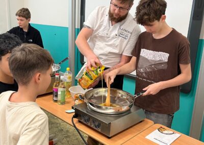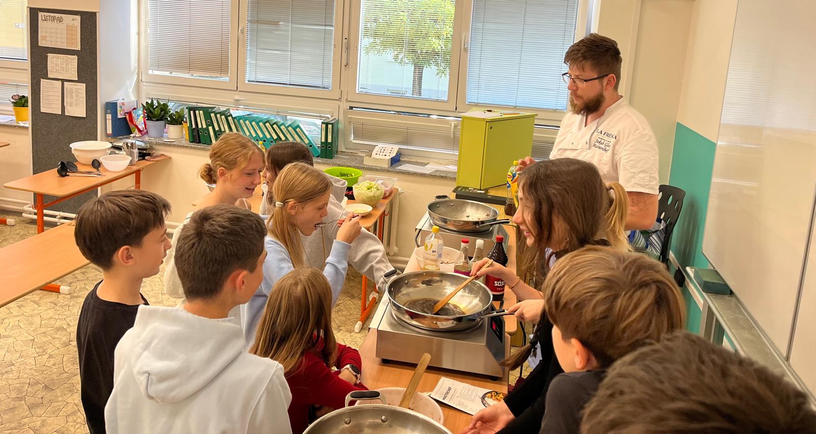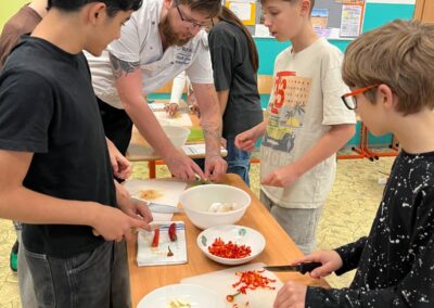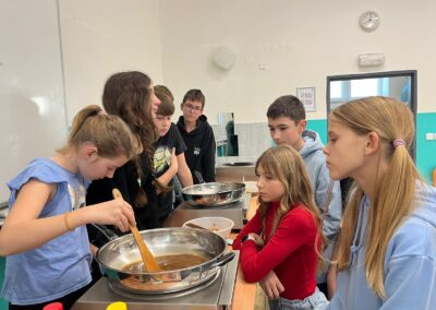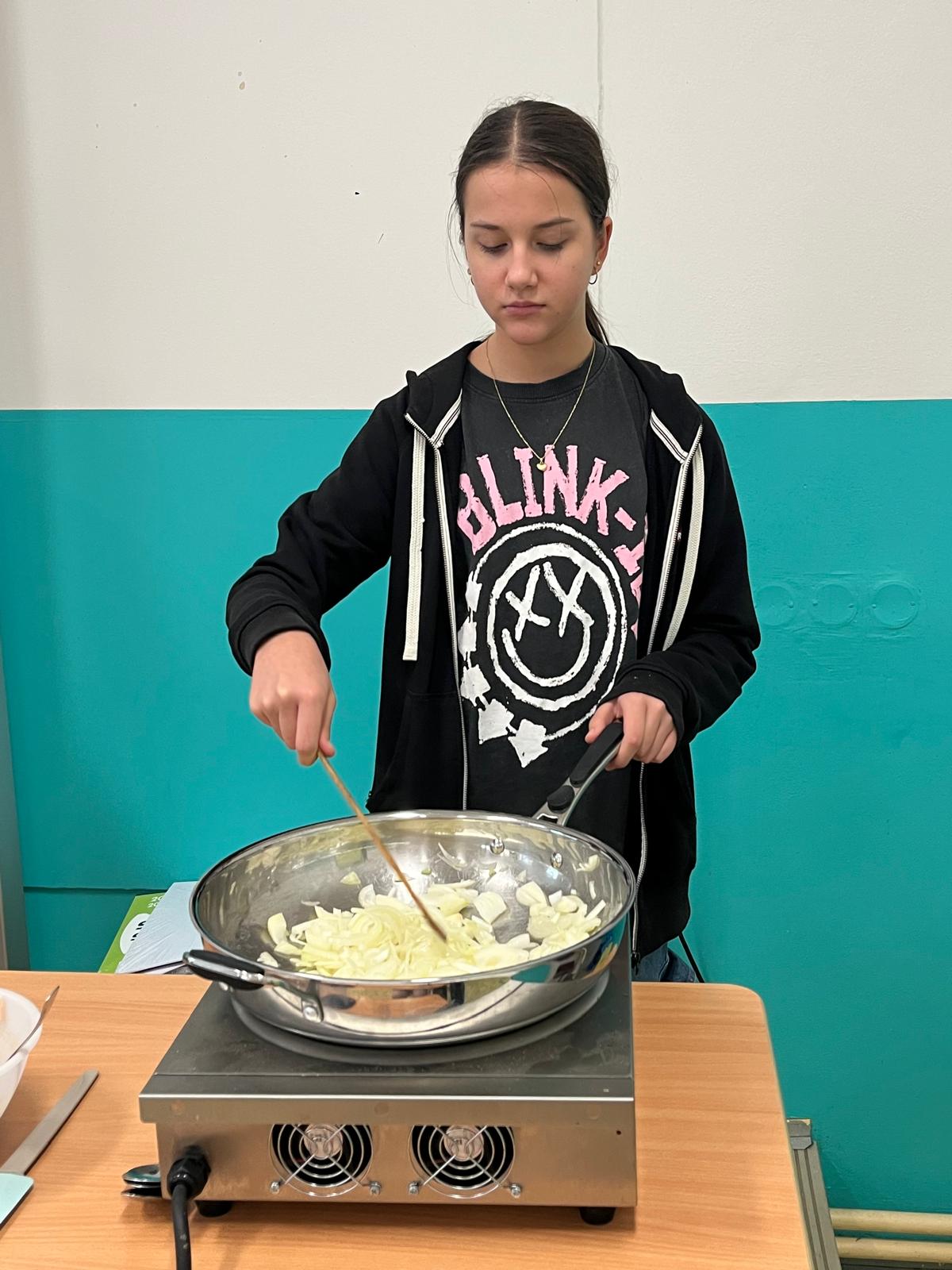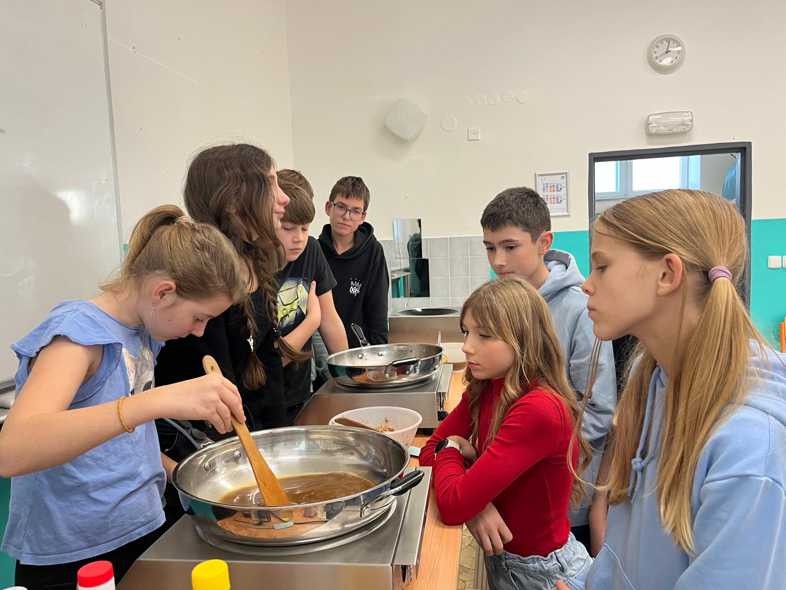 Vaříme s masterchefem autor: Jiří Bachroň | 18.11.2025 | Aktuality, Fotogalerie 2025/2026 Takhle to vypadá, když se školní třída změní v kuchyni. Sedmáci se zúčastnili výukového programu Vaříme s masterchefem a pod vedením kuchaře Jakuba Glose si vyzkoušeli uvařit kuře na pomerančích a asijské speciality.