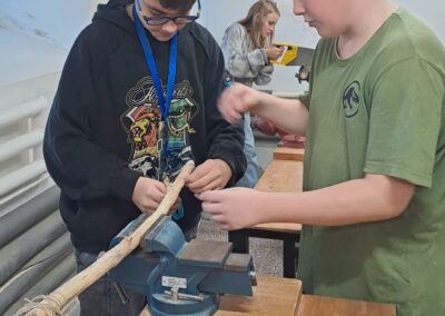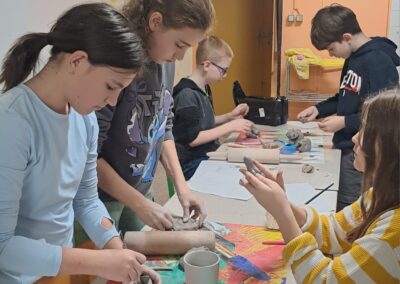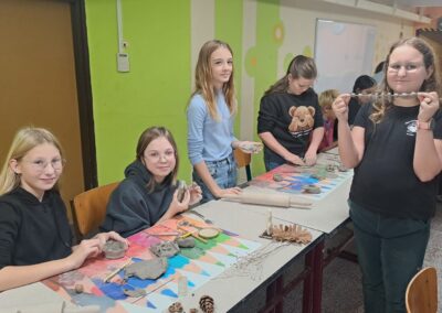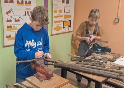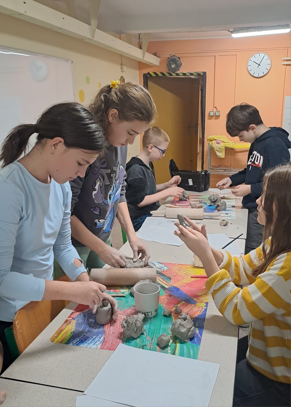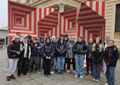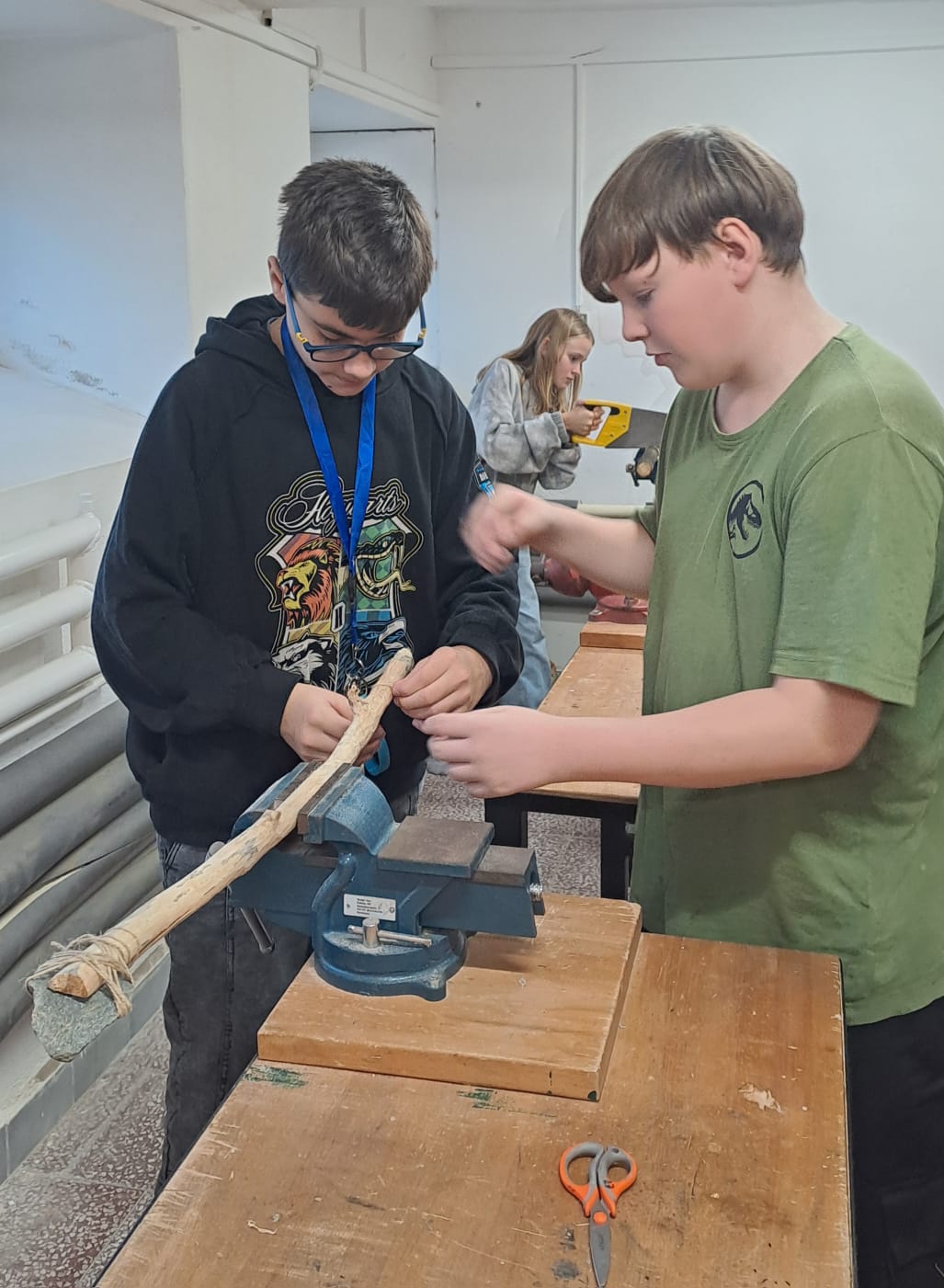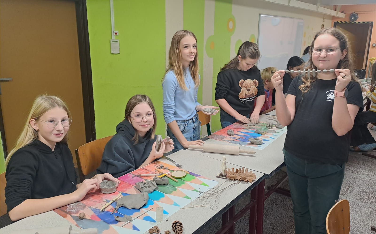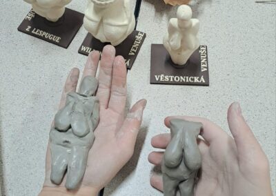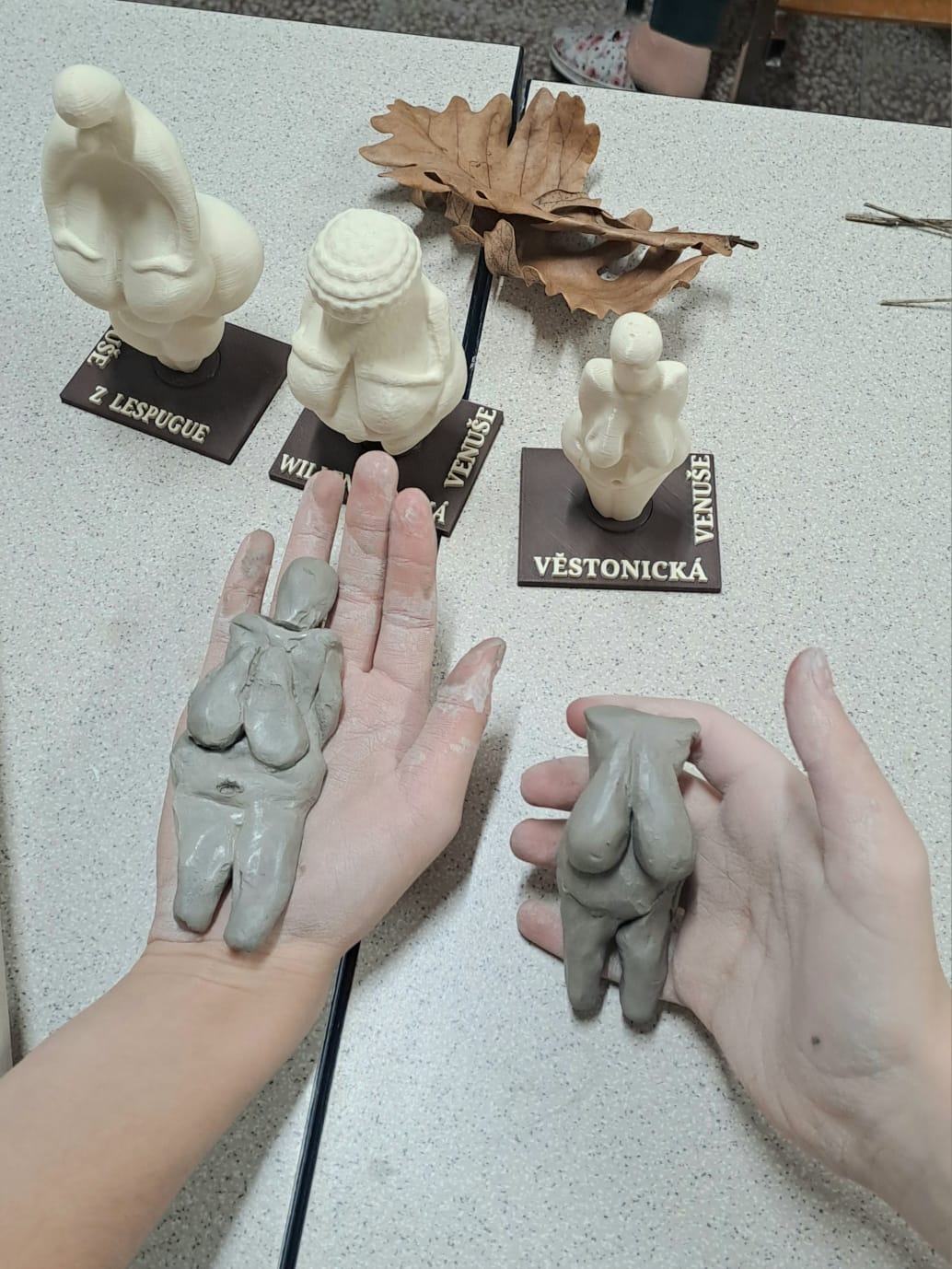 Dále si žáci prošli centrum města a seznámili se s brněnskými galeriemi, muzei a kostely. Druhý den byl již tradičně věnován tvoření pravěkých zbraní, venuší, keramiky, šperků a jeskynních maleb. Výstavu budete moci obdivovat v krčku u tělocvičny.