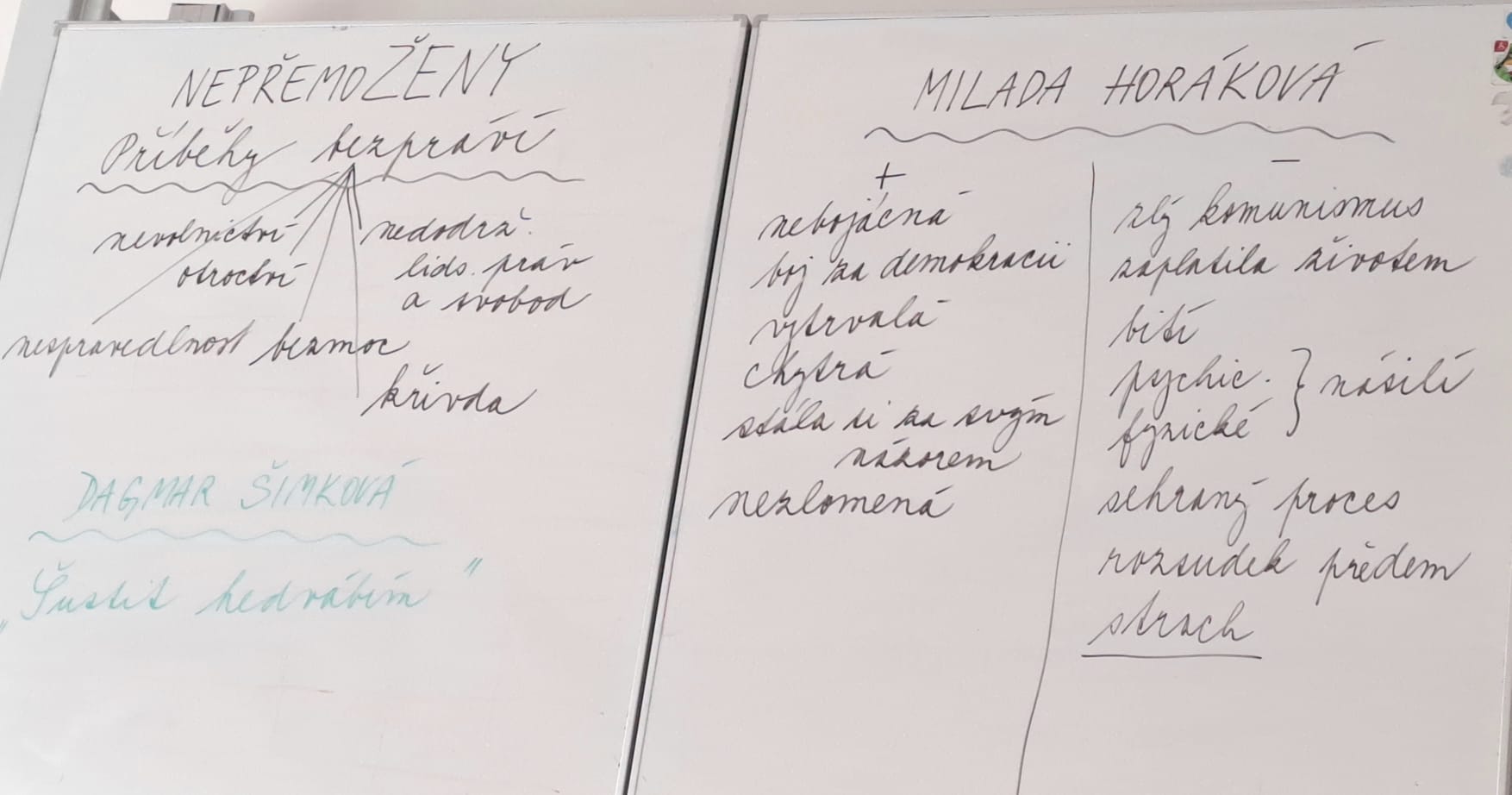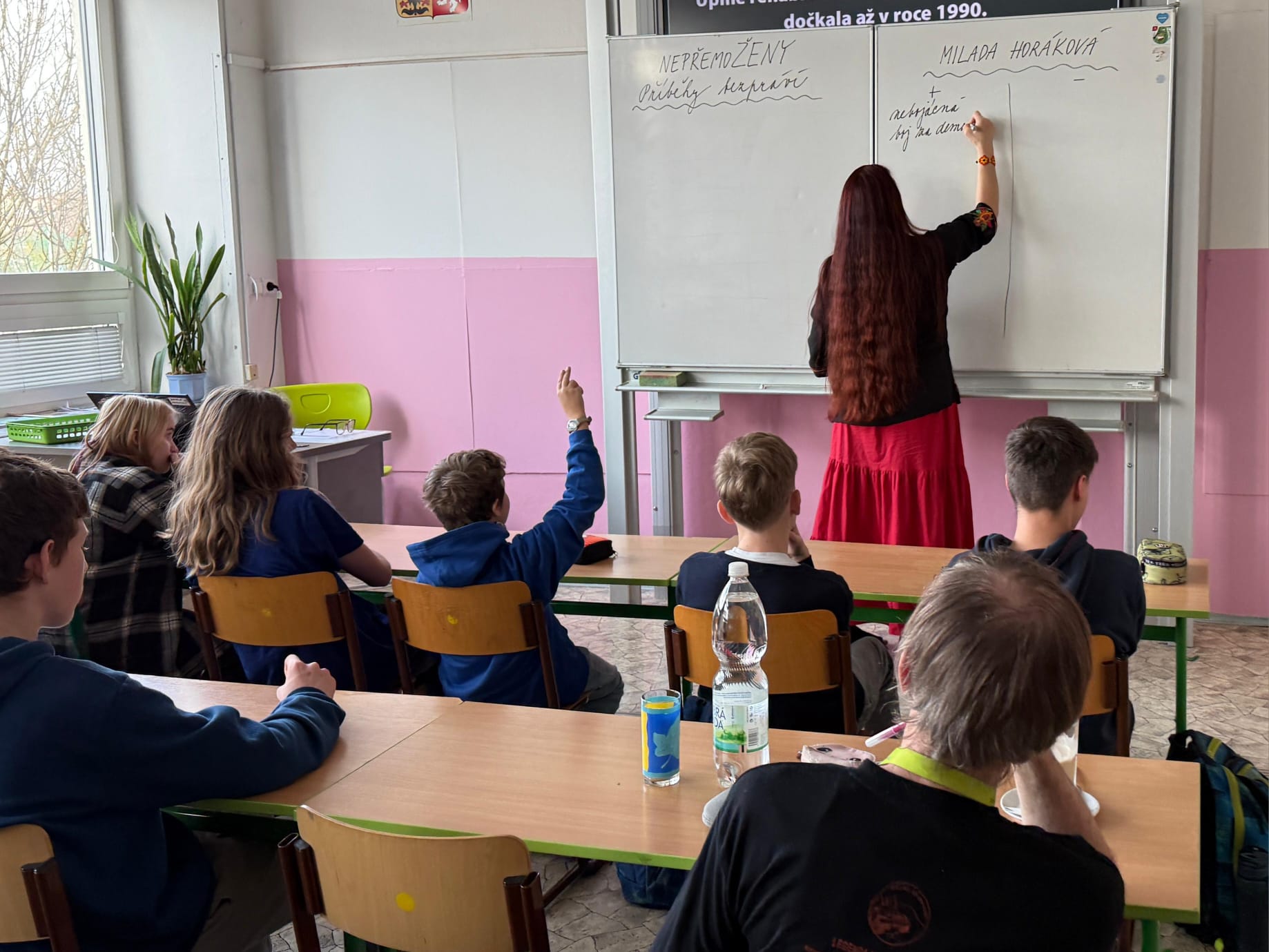 Žáci 9. ročníku (a jeden nadaný páťák) se tehdy zúčastnili promítání dvou filmů o ženách perzekuovaných totalitním komunistickým režimem. Měsíc příběhů bezpráví byl tentokrát zaměřen na téma NepřemoŽENY.