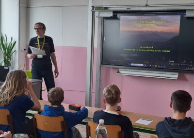 Na filmové projekce navázala přednáška pana Ing. Vejražky z Ústavu pro studium totalitních režimů a několik aktivit, ve kterých mohli žáci vyjádřit svůj názor.