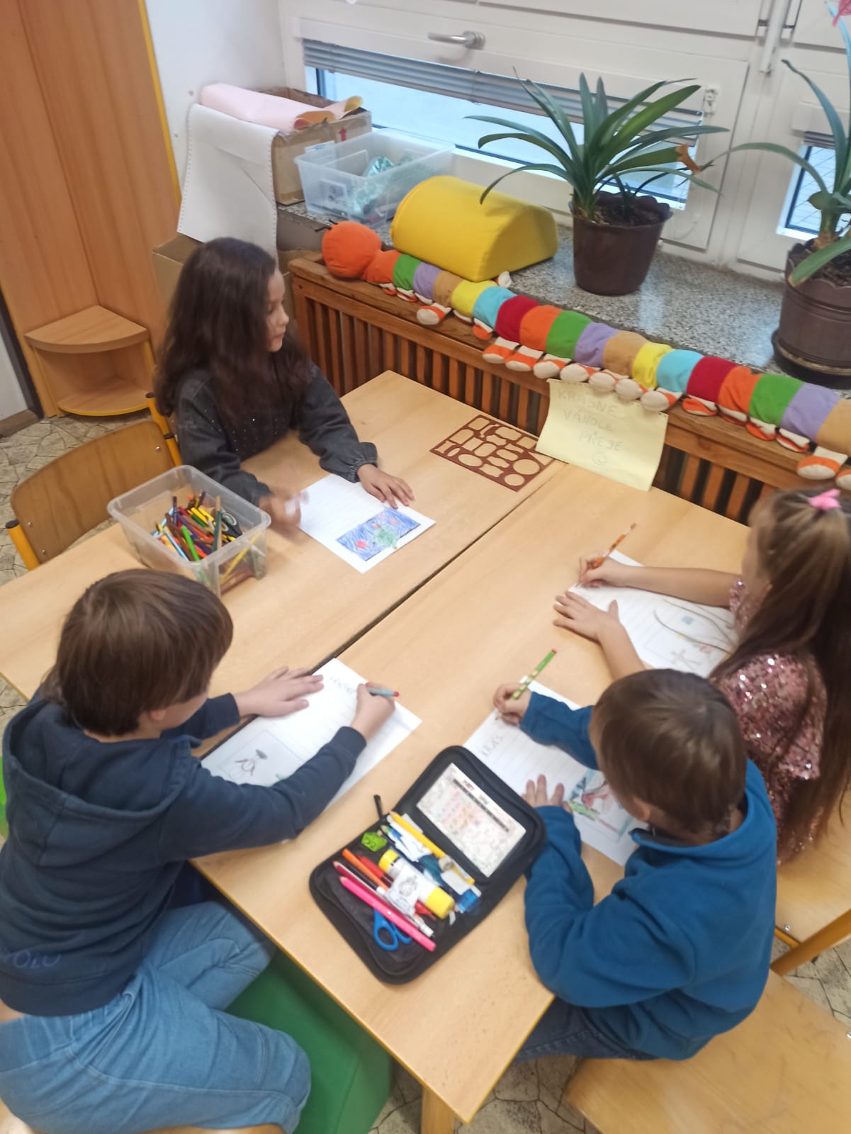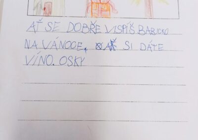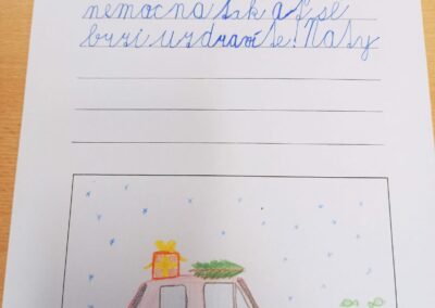 Děti z družiny vytvořily již tradiční Dopisy od srdce pro babičky a dědečky v domovech důchodců. Obrázky se jim moc povedly a některá přáníčka byla opravdu originální. Jsme rádi, že tato krásná tradice pokračuje i letos, a těšíme se na zpětnou vazbu – zda dopisy i tentokrát udělaly radost.