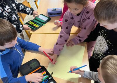 První třída prožila nevšední hodinu věnovanou emocím. Žáci byli rozděleni do dvou týmů a každý tým pracoval s různými typy emocí. Děti malovaly, povídaly si o tom, jak se emoce projevují, a učily se je rozpoznávat u sebe i u ostatních. Bylo úžasné sledovat jejich kreativitu, nadšení a otevřenost. Aktivity probíhaly v příjemné atmosféře, ve které se děti mohly vyjádřit a zároveň se něco nového naučit.