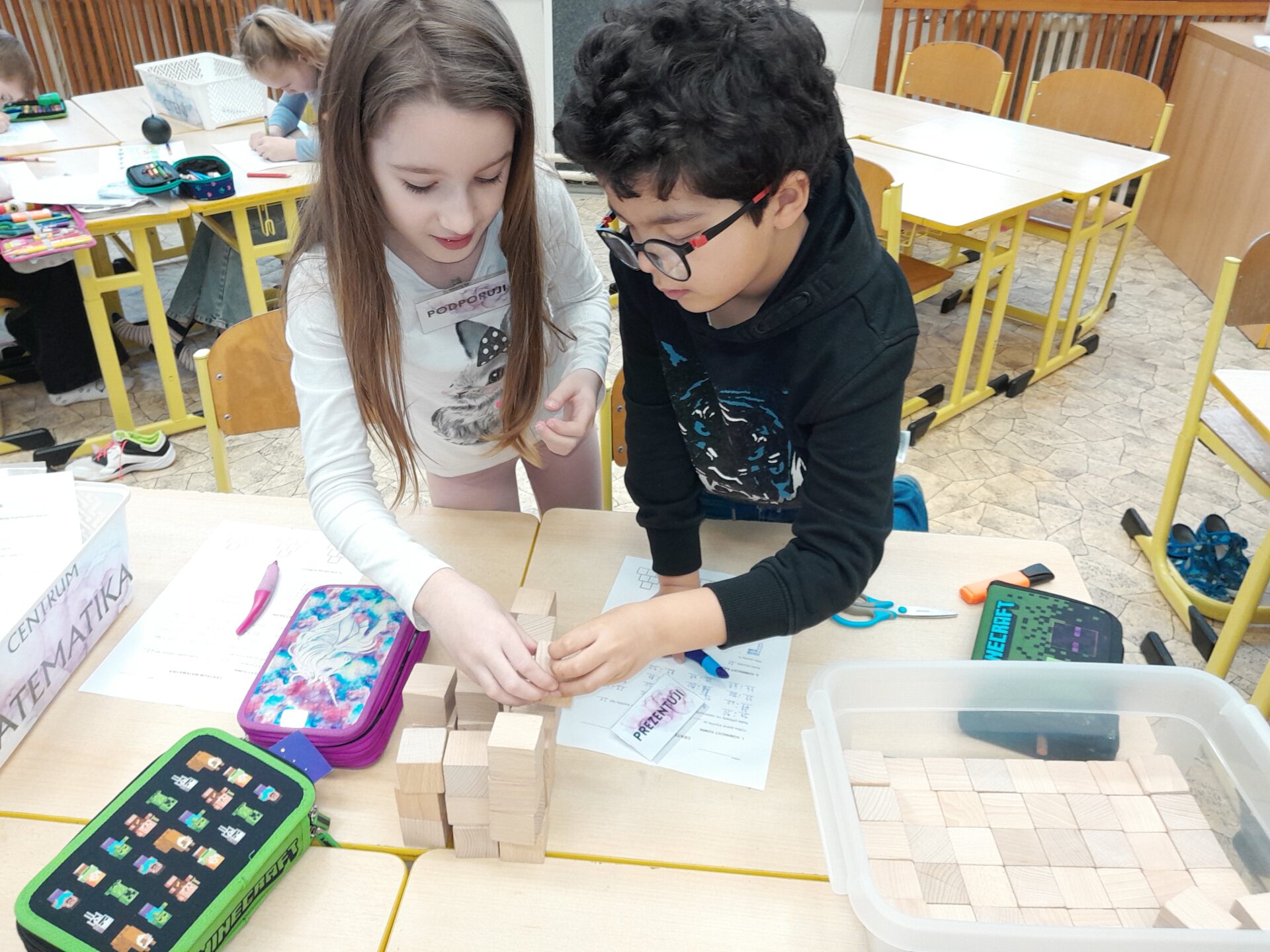 Výuka dětí z 2. A pokračuje dle vzdělávacího programu Začít spolu. Jedním z jeho stěžejních prvků je pravidelná výuka v tzv. Centrech aktivit. Učivo je v nich pojato jak mezipředmětově, tak diferencovaně. U dětí jsou cíleně rozvíjeny klíčové kompetence, tedy měkké dovednosti jako komunikace, spolupráce, práceschopnost, řešení problémů, aplikace nabytých vědomostí atd. A současně i jednotlivé typy inteligence, aby každý jednotlivý žák či žákyně v jednom z pěti Center aktivit prožil úspěch. Pointou je pak vrstevnické učení – jednotlivé skupiny dávají jiným rady, nač si dát při práci pozor a jsou sto ji vysvětlit. A jak konkrétně Centra aktivit probíhají?