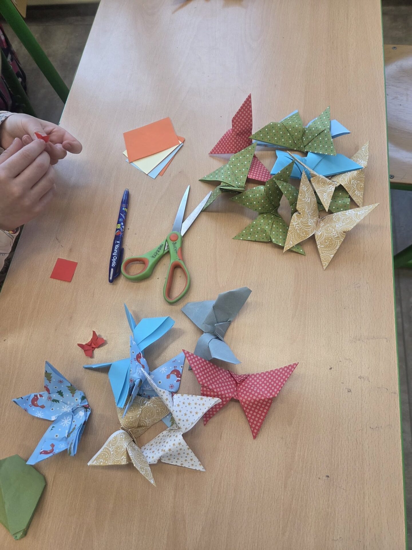 Inspirováni knihou Kiko a tajemství papírového motýla 🦋 si druháci z béčka vyzkoušeli tradiční japonské umění origami. 🇯🇵 V pracovních činnostech procvičili postup podle návodu, jemnou motoriku a především trpělivost. 👐 Legenda praví, že kdo složí 1️⃣0️⃣0️⃣0️⃣ papírových motýlů, může si přát cokoliv bude chtít a přání se mu splní. Tak kdo přijme výzvu a zjistí, jestli je legenda pravdivá? 🧐😀
