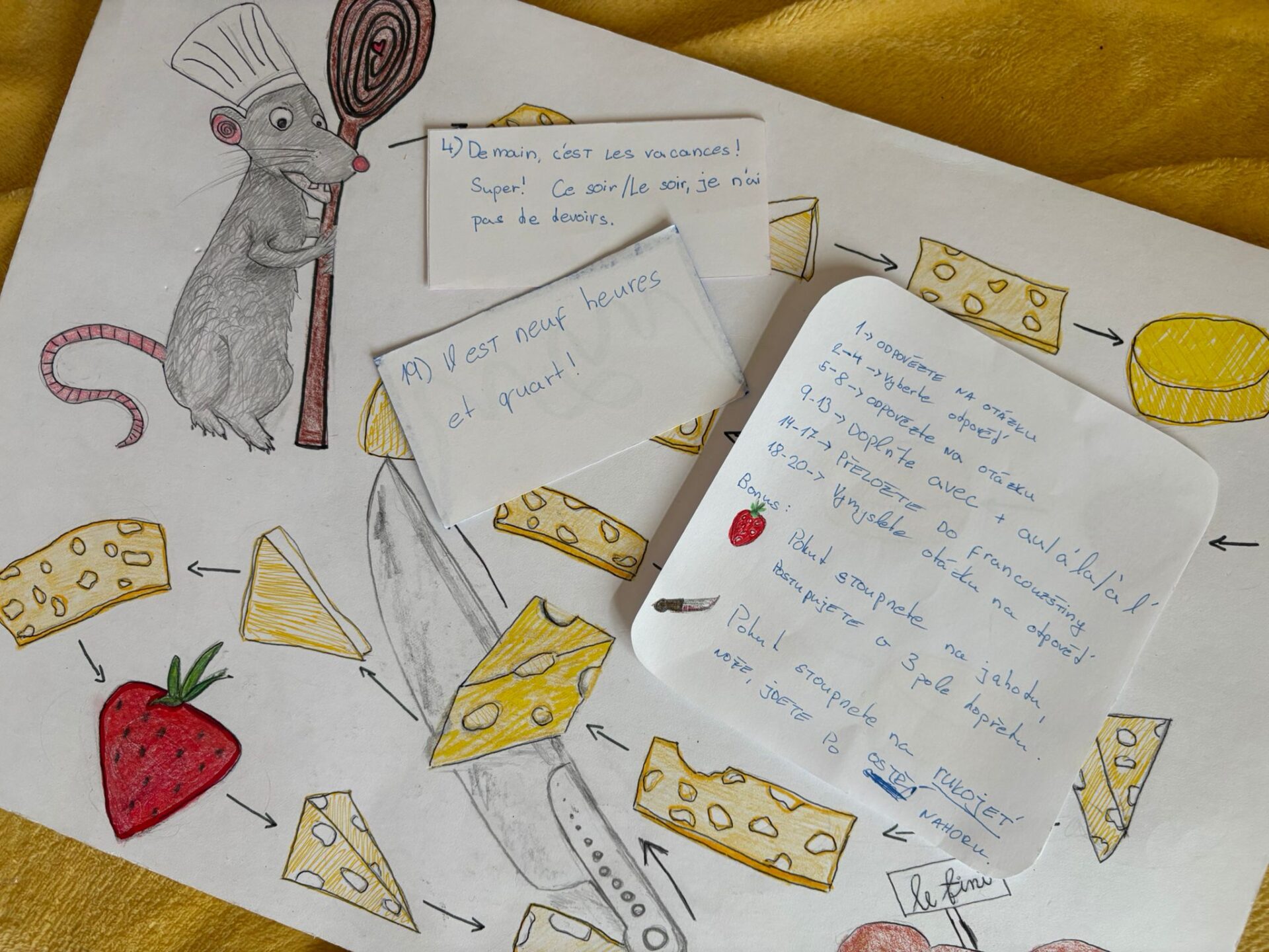 Deváťáci tvořili deskové hry ve francouzštině autor: Jiří Bachroň | 25.3.2026 | Aktuality, Fotogalerie 2025/2026 Žáci 9. ročníku vytvářeli vlastní deskové hry ve francouzštině – od návrhu až po realizaci. Součástí aktivity bylo nejen výtvarné zpracování, ale především práce s jazykem.