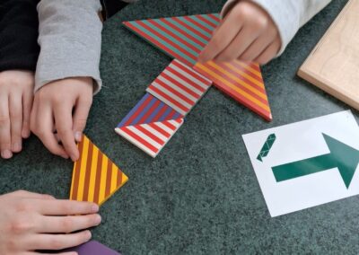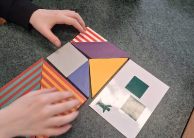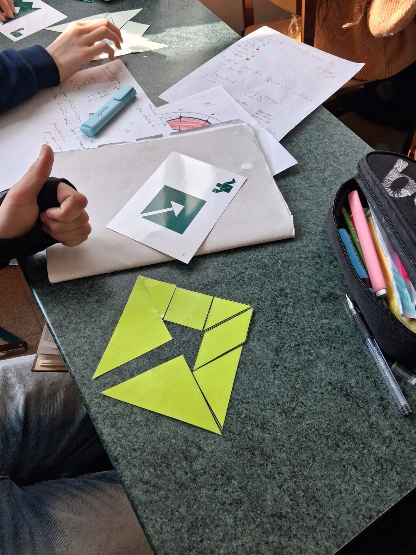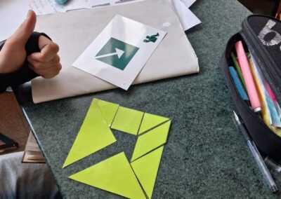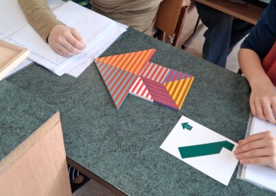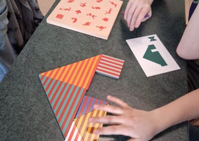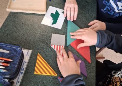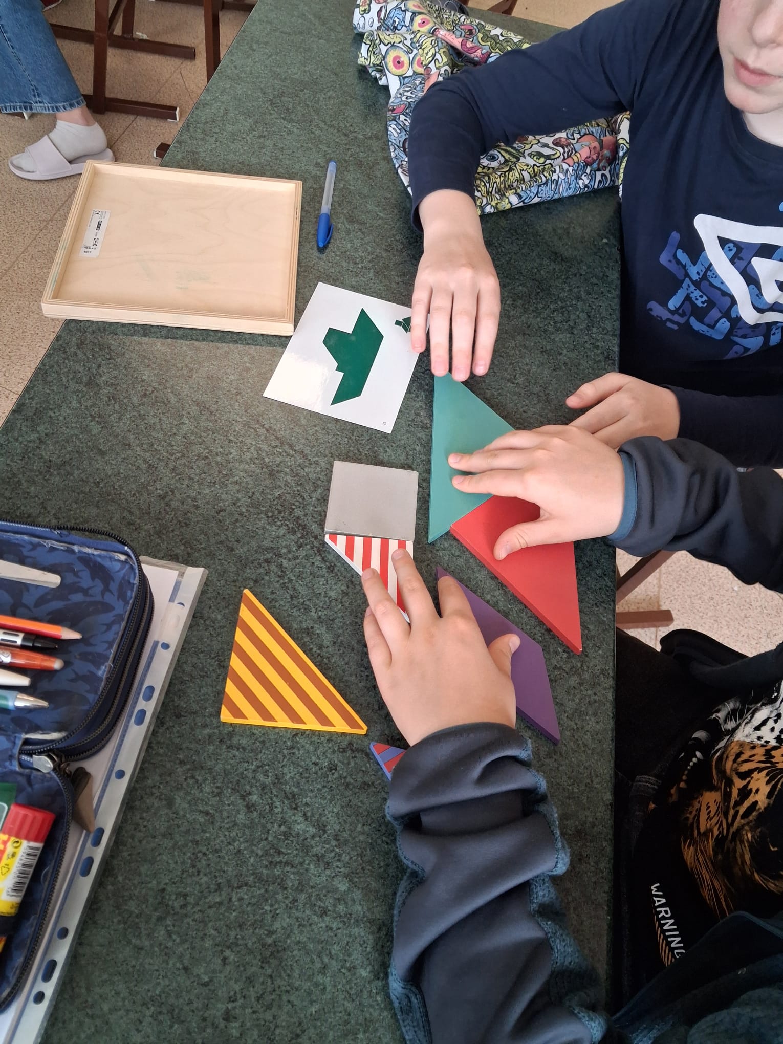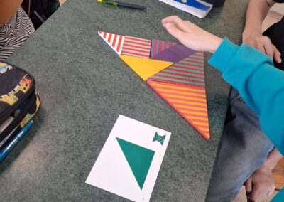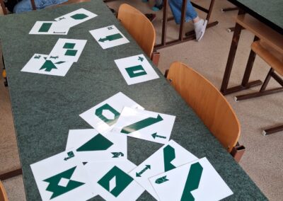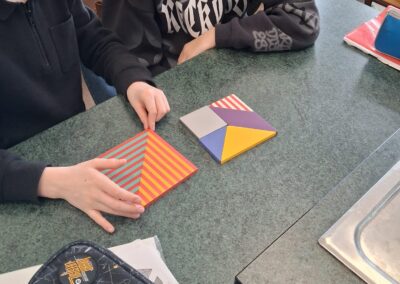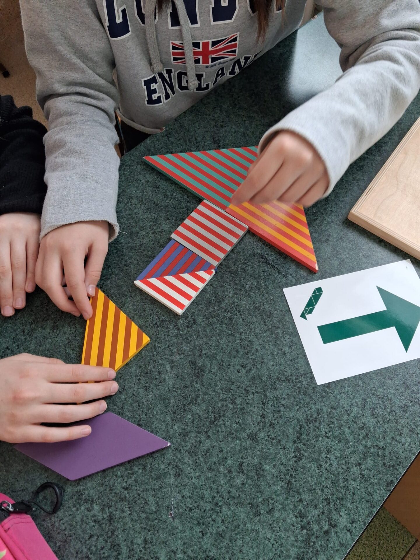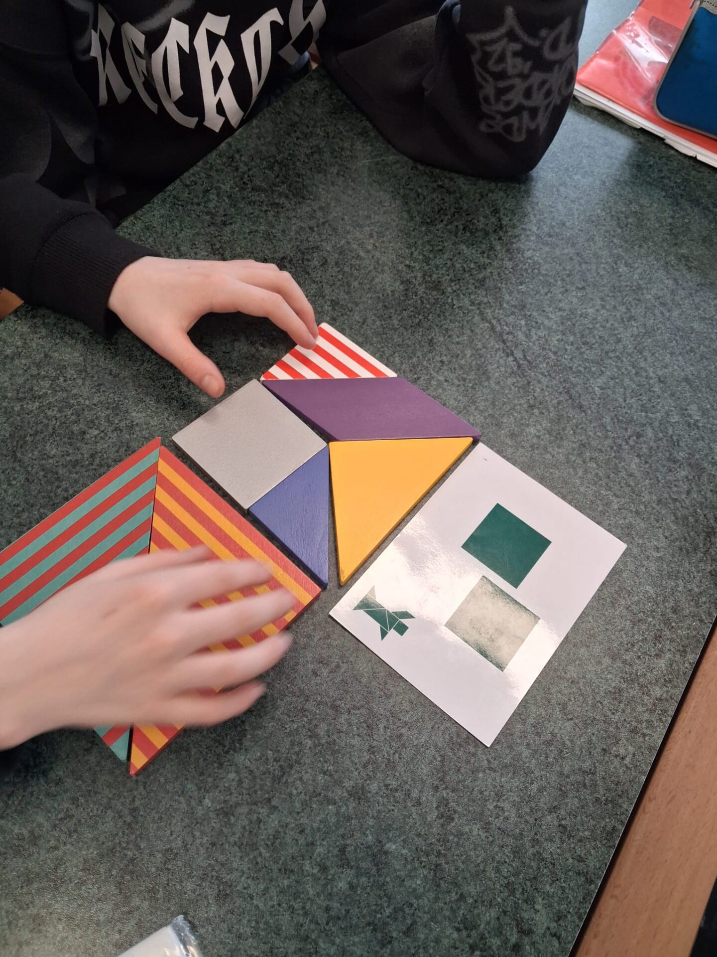 Práce s tangramy autor: Jiří Bachroň | 27.3.2026 | Aktuality, Fotogalerie 2025/2026 Nedávná hodina semináře z matematiky v 6. B a práce s tangramy. Ačkoliv někteří žáci viděli tento slavný hlavolam sedmi dílků poprvé, skládání jim šlo docela dobře.