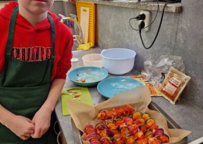 Když se 7. A pustí do vaření autor: Jiří Bachroň | 7.4.2026 | Aktuality, Fotogalerie 2025/2026 Žáci 7. A si ve vaření vedou jako úplní profíci. Připravili například několik různých druhů špízů s bramborem a všechny byly vynikající. Ocenili je i vyučující, kteří dostali ochutnat.
