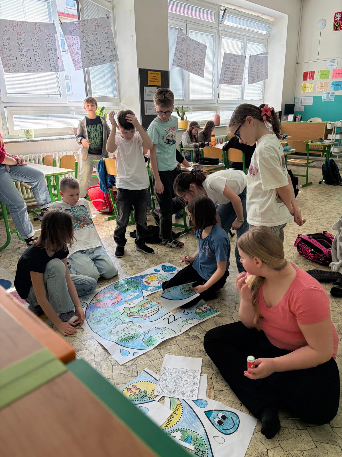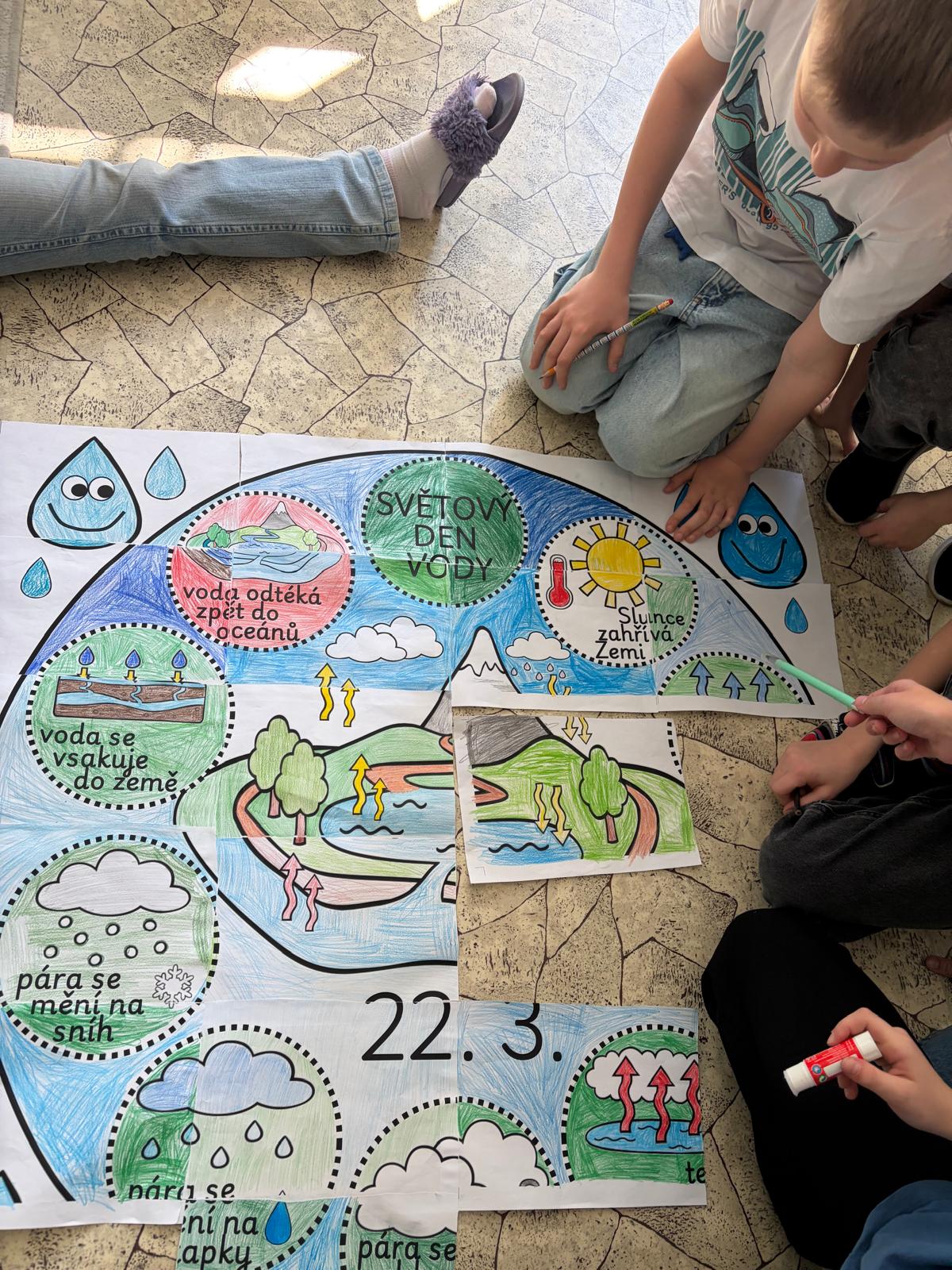 Světový den vody autor: Jiří Bachroň | 7.4.2026 | Aktuality, Fotogalerie 2025/2026 Žáci 4. A v hodině Čs společně pracovali na vytvoření kooperativního obrazu ke Světovému dni vody.