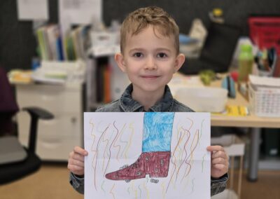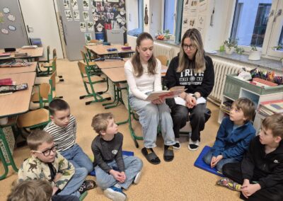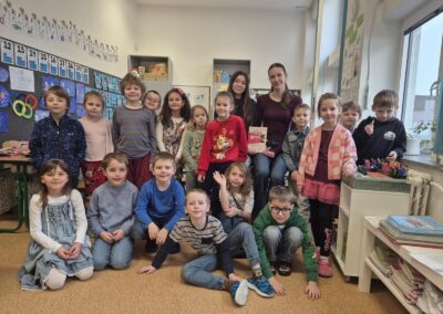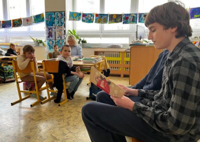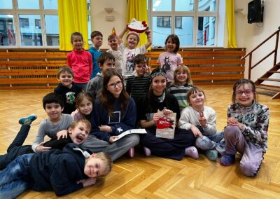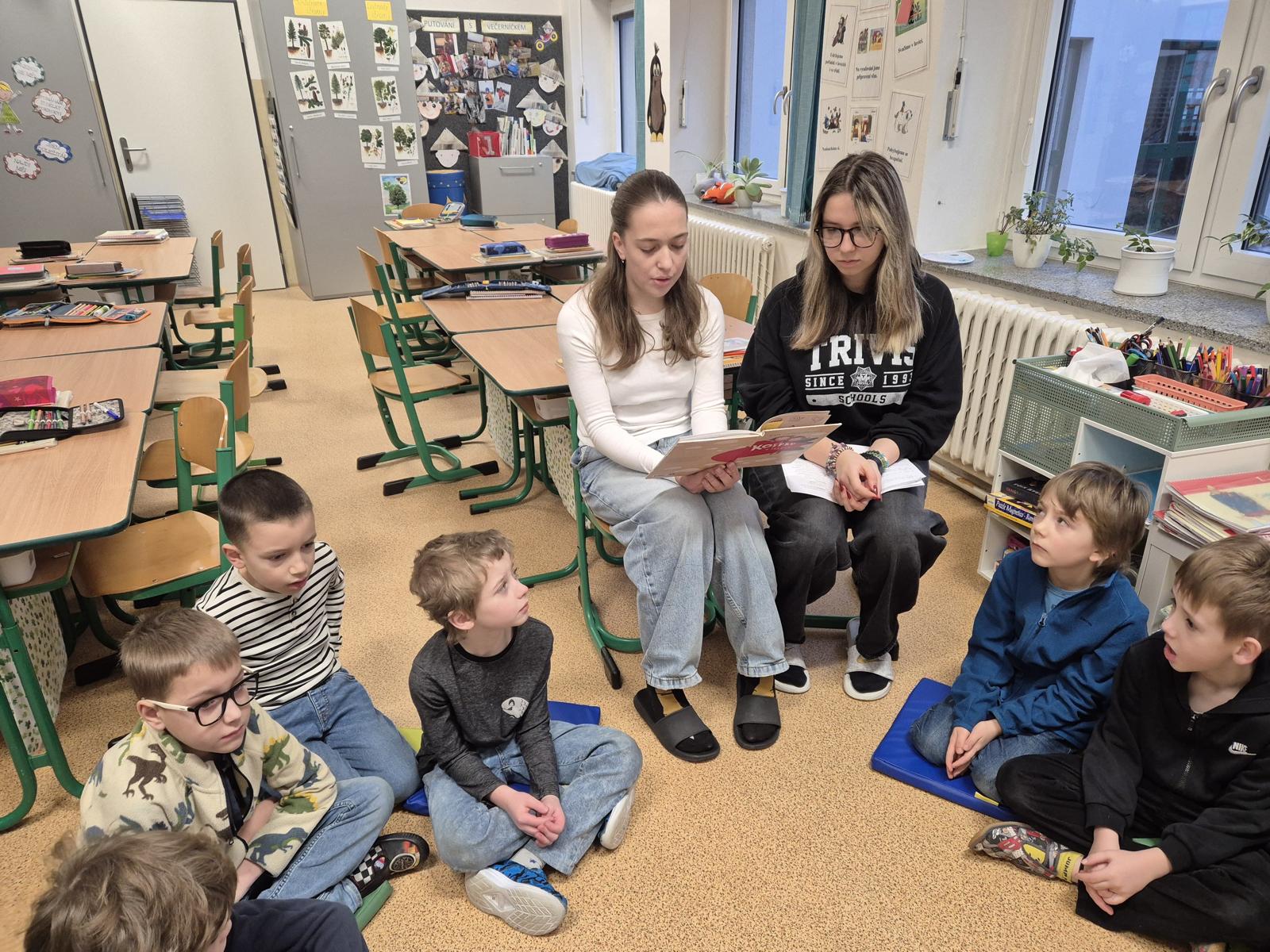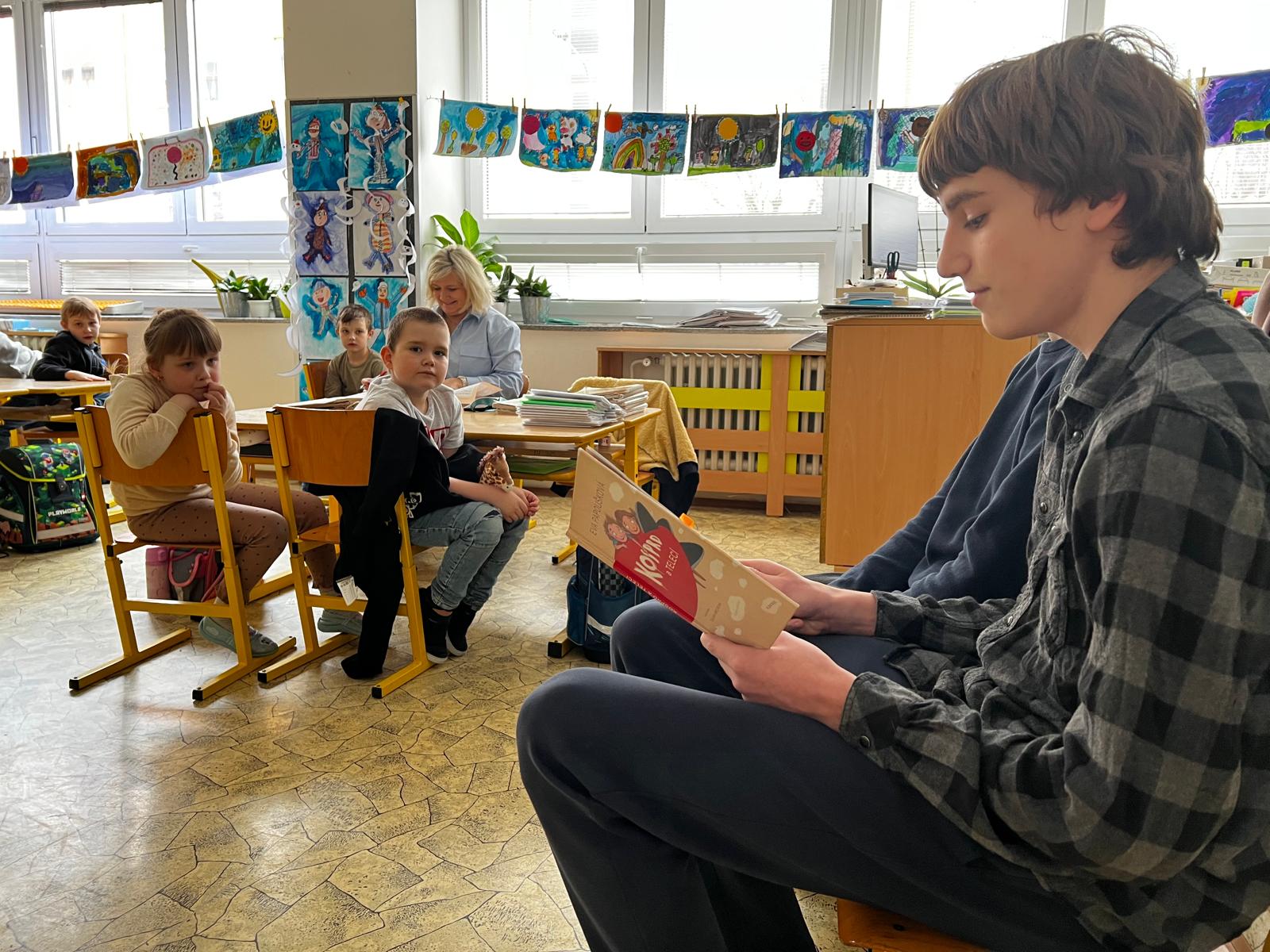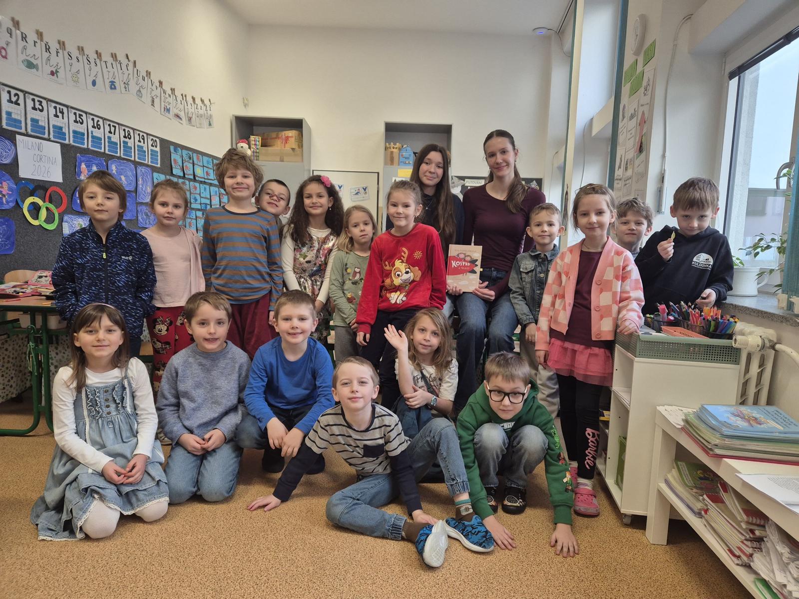 Ani letos na Kuldovce nechybělo tradiční čtení prvňáčkům. 📚 Tentokrát si deváťáci připravili obzvláště zábavnou knihu. 📖😀 Během několika setkání společně s prvňáčky prožili příběhy dvou předškoláků, kluka Kosprda a jeho kamarádky Telecí, ze stejnojmenné knihy od Evy Papouškové. Kapitoly deváťáci doplnili zajímavými úkoly pro nejmenší školáky, díky kterým se všichni často výtečně pobavili…🧐🎨🤣