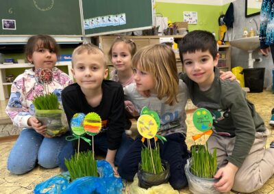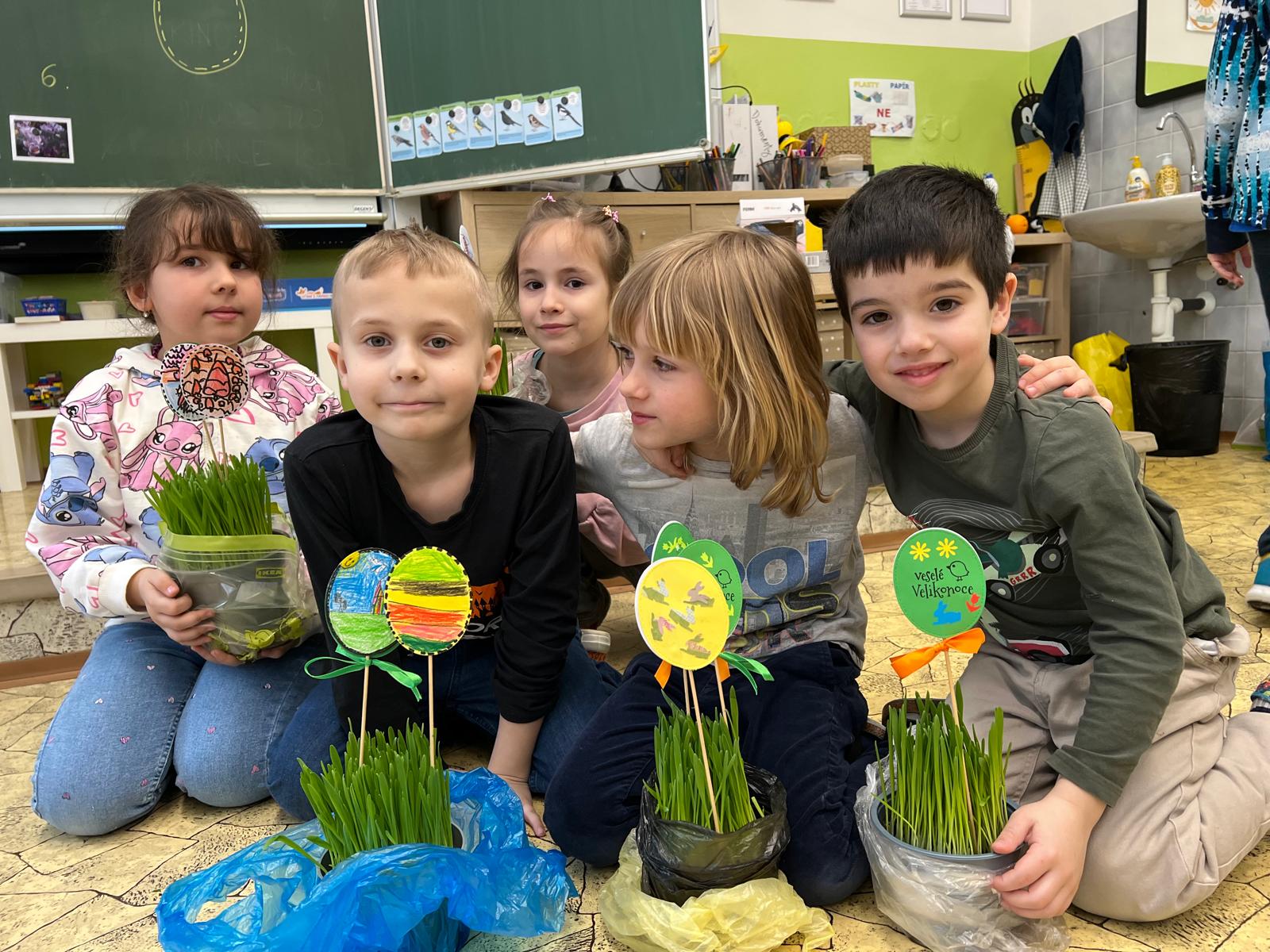 Velikonoční tvoření prvňáčků – sami zaseli, sami vytvořili zápichy i se popasovali s Big Shotem. A na závěr si své výtvory pyšně odnesli domů. 🐣🌼