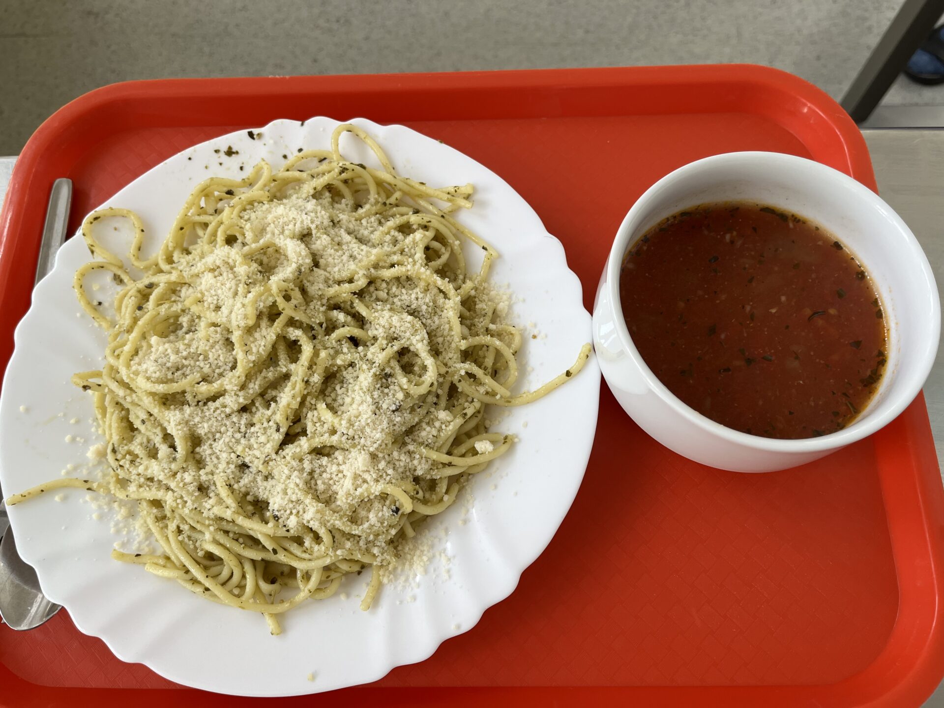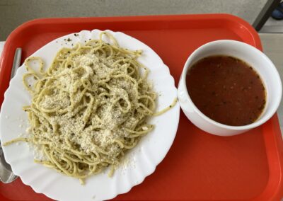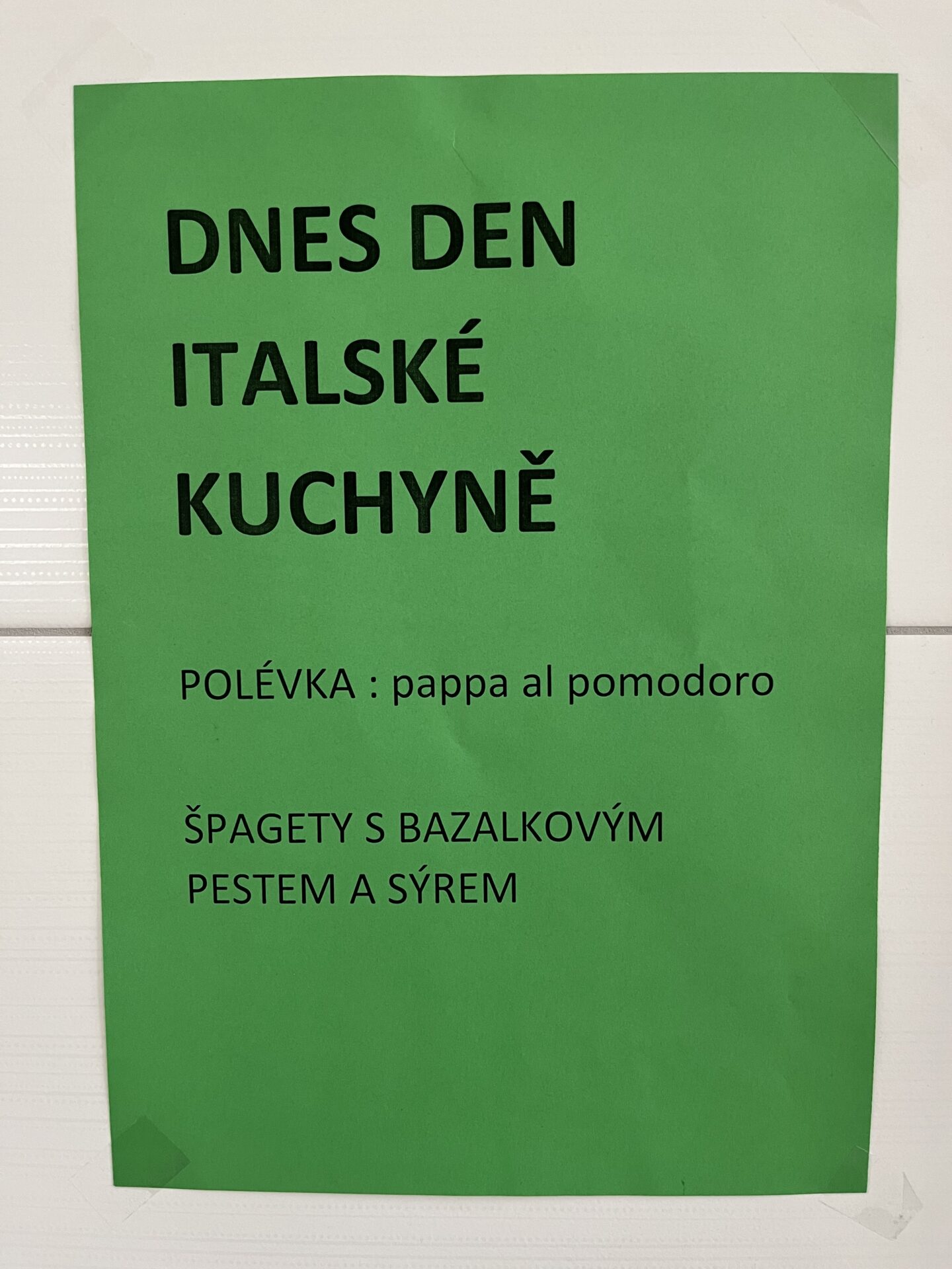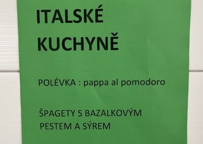 Na konci měsíce jsme se v jídelně přenesli do Itálie – podávala se polévka pappa al pomodoro a jako hlavní chod špagety s bazalkovým pestem. 🍝